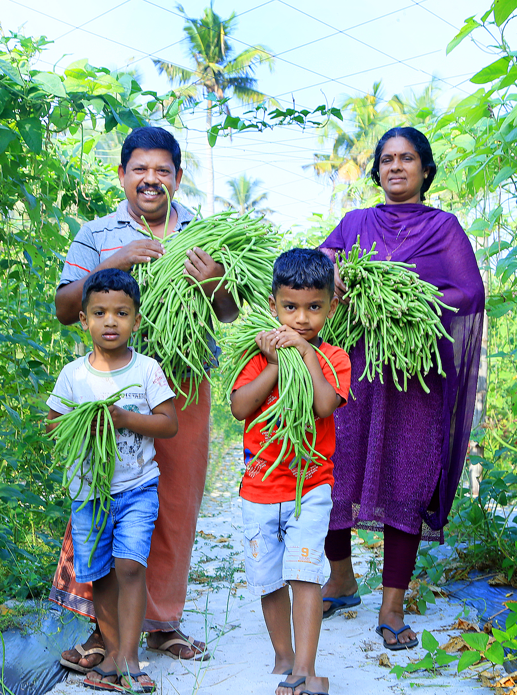 ഭാര്യയും മക്കളുമെല്ലാം കൃഷിയില് സുനിലിനെ സഹായിക്കാനെത്തും. ഭാര്യ റോഷ്നി കൃഷിപ്പണികളില് എല്ലാം സജീവമാണ്. മക്കള് കൃഷ്ണവ്, കൃതിക് എന്നവര് എല്കെജി വിദ്യാര്ഥികളാണ്. തങ്ങളാല് കഴിയുന്ന ജോലികള് ചെയ്ത് ഇവരും കൃഷിയിടത്തിലുണ്ടാകും. പുതിയ തലമുറയെക്കൂടി കാര്ഷിക സംസ്കാരത്തിന്റെ മഹത്വം പറഞ്ഞു മനസിലാക്കണമെന്ന അഭിപ്രായക്കാരനാണ് സുനില്.